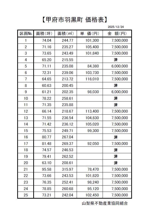 甲府市羽黒町字初鳴633番1・他10筆 |